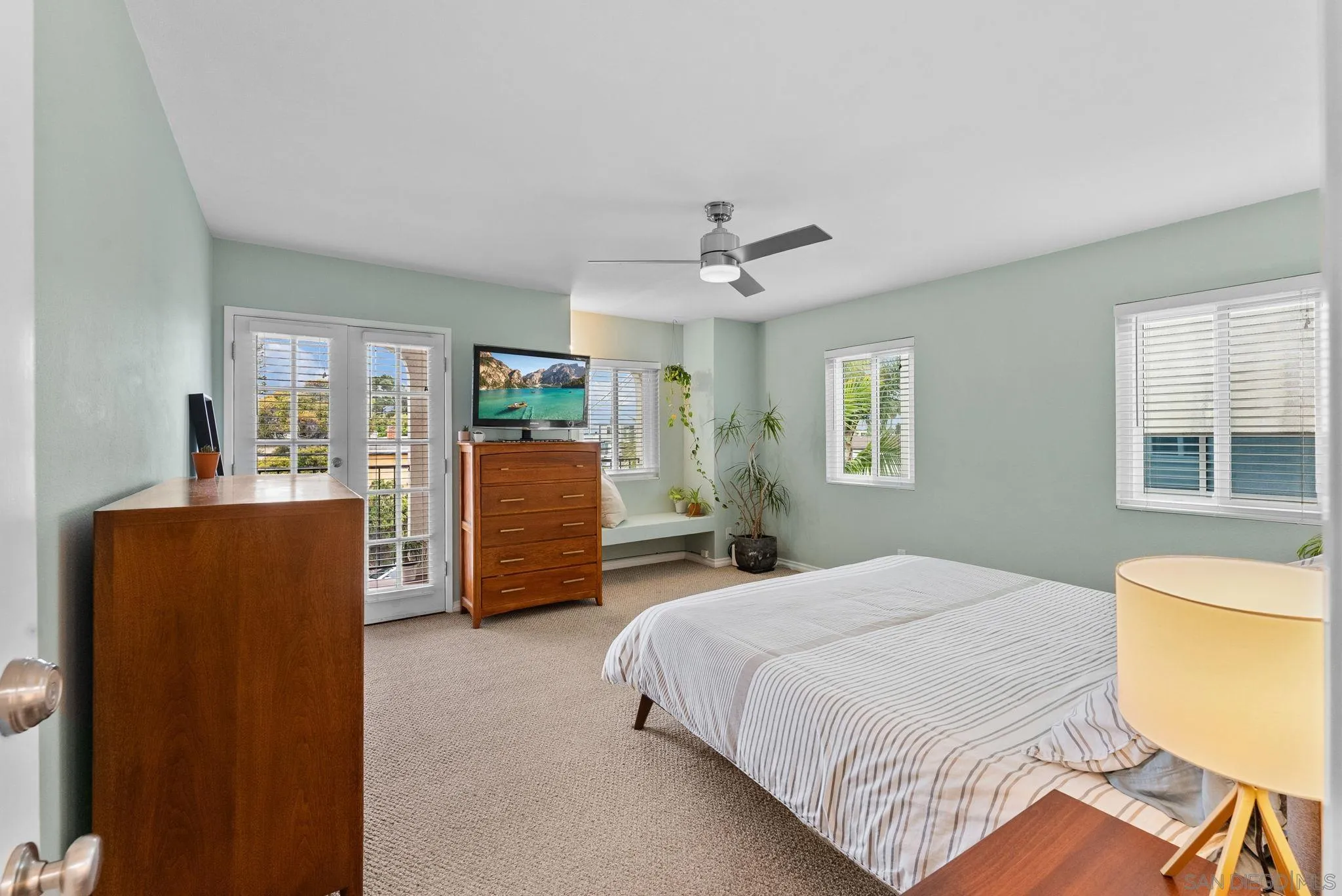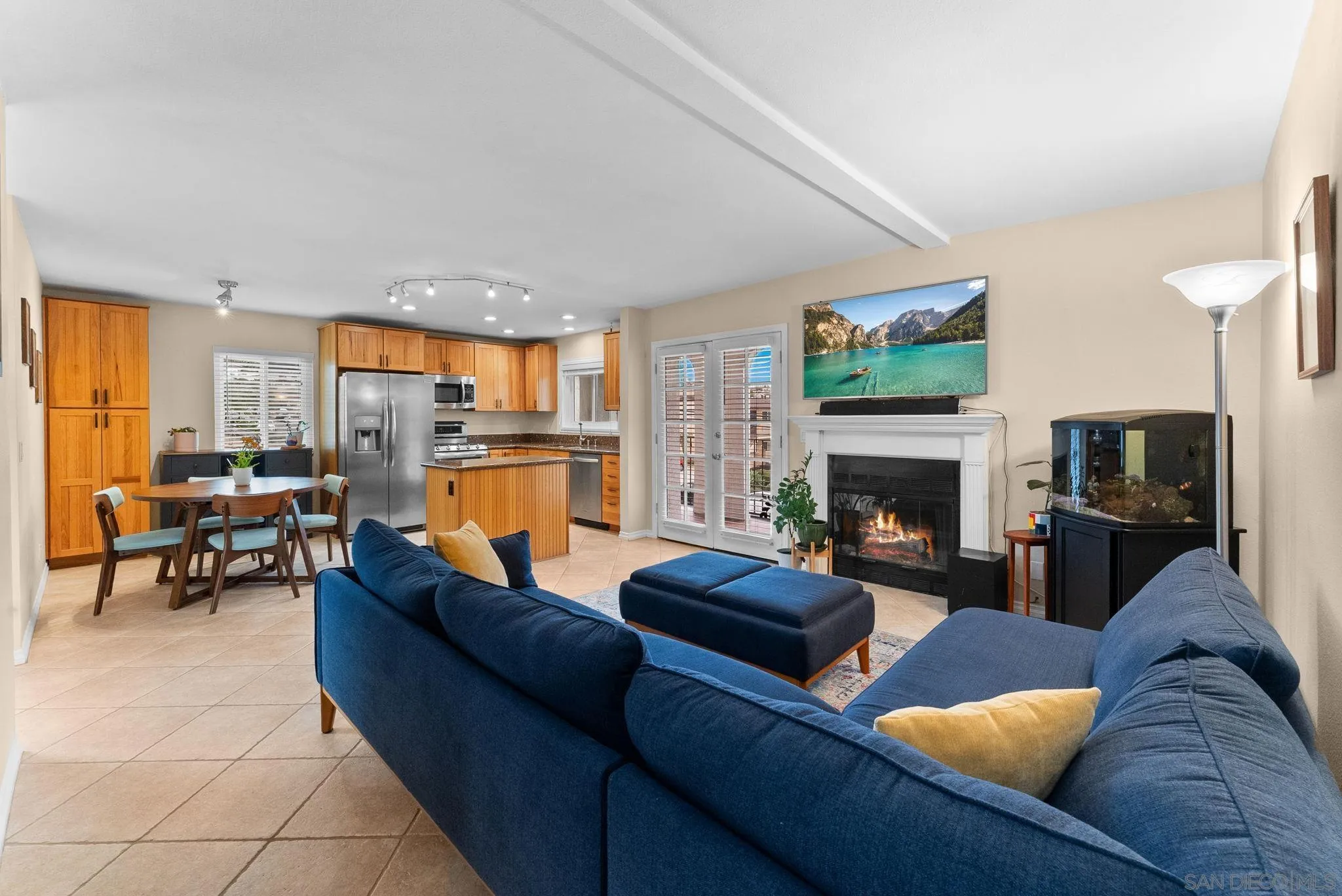 Discover this light and bright top-floor 2-bedroom, 2-bathroom condo, nestled in the highly desirable Point Loma neighborhood. Just moments away from vibrant shops, restaurants, Liberty Station, and the serene bay, this home offers the best of San Diego living at your fingertips. Step inside to a sunlit open living space. The updated kitchen boasts a large island and abundant storage, seamlessly flowing into a dining area and a cozy living room with a welcoming fireplace. French doors open to your private balcony--ideal for soaking in the California sunshine or enjoying tranquil evenings. Retreat to the oversized primary bedroom, featuring a spacious walk-in closet and a private balcony. The extra large second bedroom includes a beautifully remodeled ensuite bathroom, offering privacy and comfort for guests or family. Enjoy peace of mind with recent updates including a newer hot water heater and in-unit washer and dryer, plus a recently replaced roof by the HOA. This condo also offers two secure side-by-side parking spaces and a large private storage unit, ensuring convenience and security. Live just minutes from Ralph's grocery store, Better Buzz Coffee, and Shelter Island. This condo has VA Assumable Loan featuring a low interest rate for VA buyers.